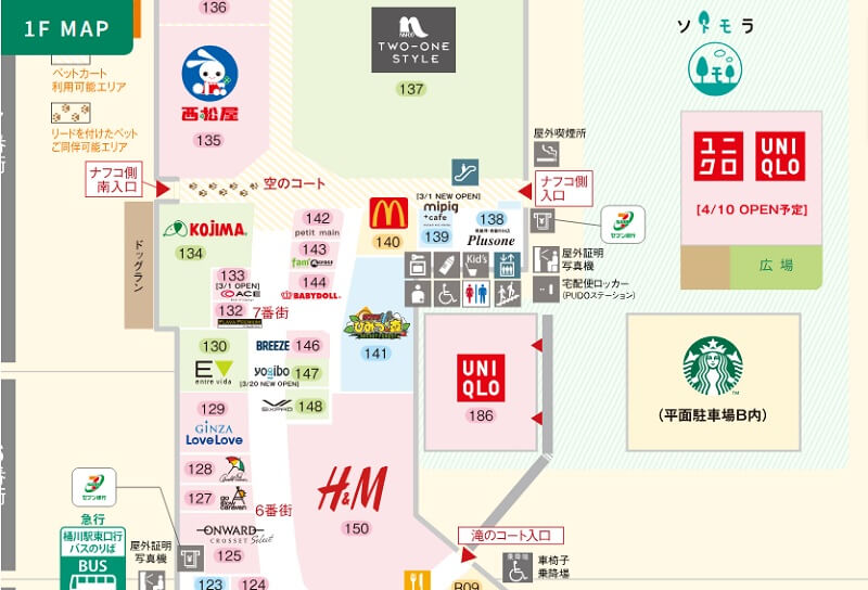 平面駐車場Cのソトモラへ!4月10日にオープンするユニクロの場所